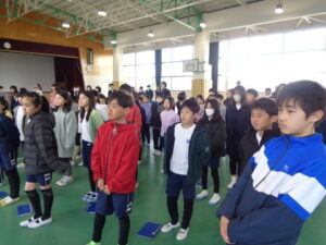 校長先生の話のあと、図書委員会・体育委員会・環境美化委員会からの発表です。