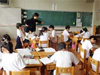 3限目から児童も一緒に奉仕作業です。大人の人と一緒にすると、子どもたちははりきってします。 |