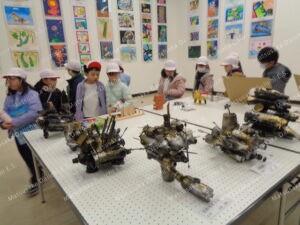 1・2年生の子どもたちが、松阪市埋蔵文化財センターで開催中の「松阪市幼小中造形展」へ作品の鑑賞に行ってきました。第一小学校からも出展しましたが、市内の各学校から力作が集まっていました。今後の作品制作の参考になったかな。最後、鈴の森公園で少し遊んできました。