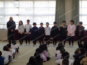 今日は、冬休み明け集会、1月11日(土)開催の「松阪市小学校サッカー大会」に参加する4年~6年の有志メンバーの壮行会を行いました。