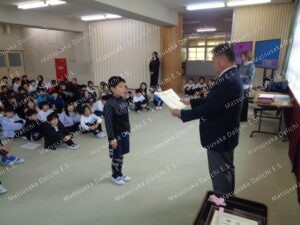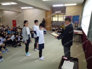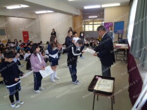 今日は、第187回友だち集会でした。今月の歌「もみじ」の大合唱で始まり、伝達表彰、環境美化委員会からピカピカ賞の表彰、代表委員会からいじめ防止の取組と赤い羽根募金協力のお願いがありました。最後に、今月のお楽しみは「ビンゴ大会」で盛り上がりました。
