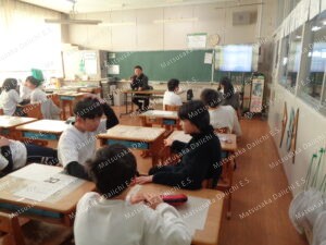 6年生、卒業式に向かって準備中。みんなで、小学校生活を思い出しながら、別れの言葉を考えています。