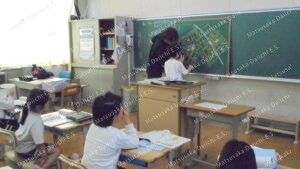 3年生、社会。「校区の様子」校区の地図から自分の家を検討づけています。