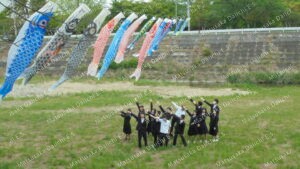 今年も恒例の殿町中学校区青少年健全育成会と殿町中学校生徒による「鯉吹かし」が始まりました。