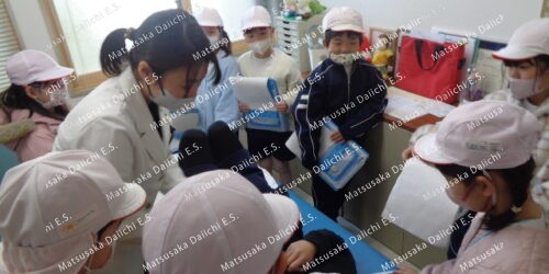 4年生、理科。しっかり見てヘチマの観察です。どんなことに気づけたかな。